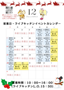 東京カステラパーク12月と年始のスケジュールをお知らせいたします。
