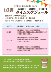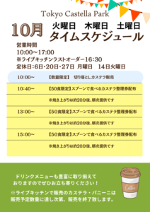 東京カステラパーク・ライブキッチン10月のお知らせ