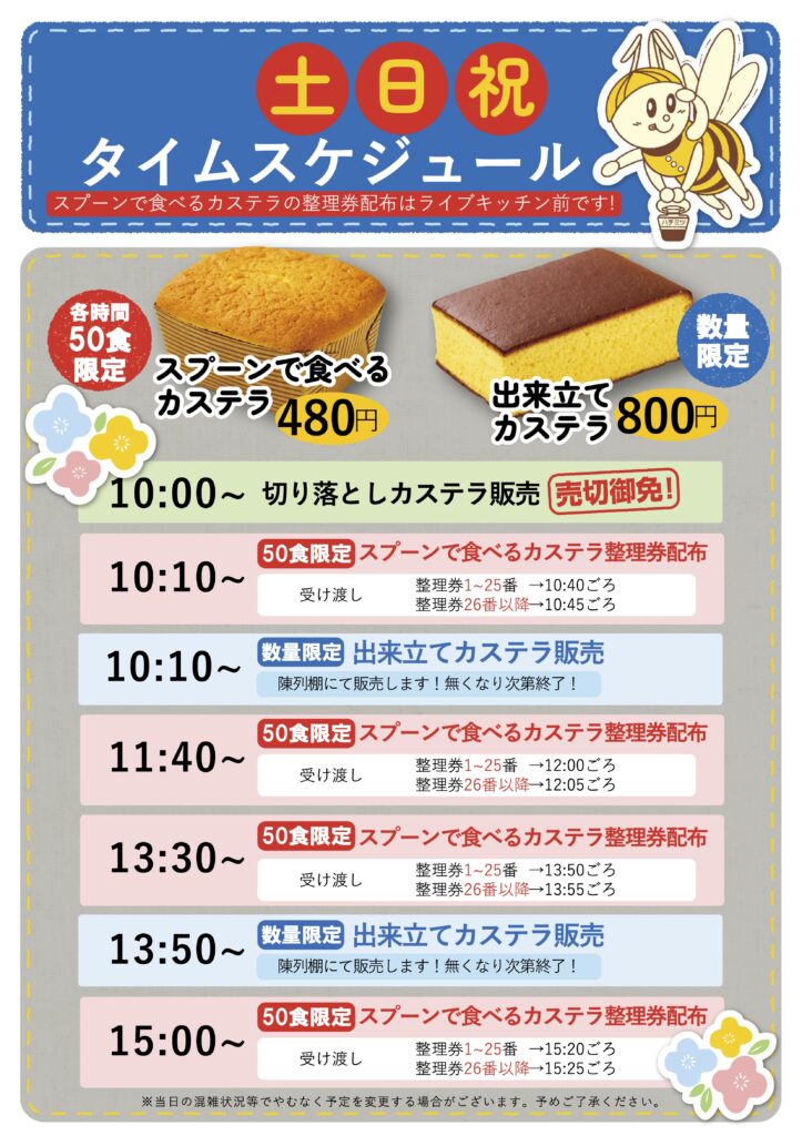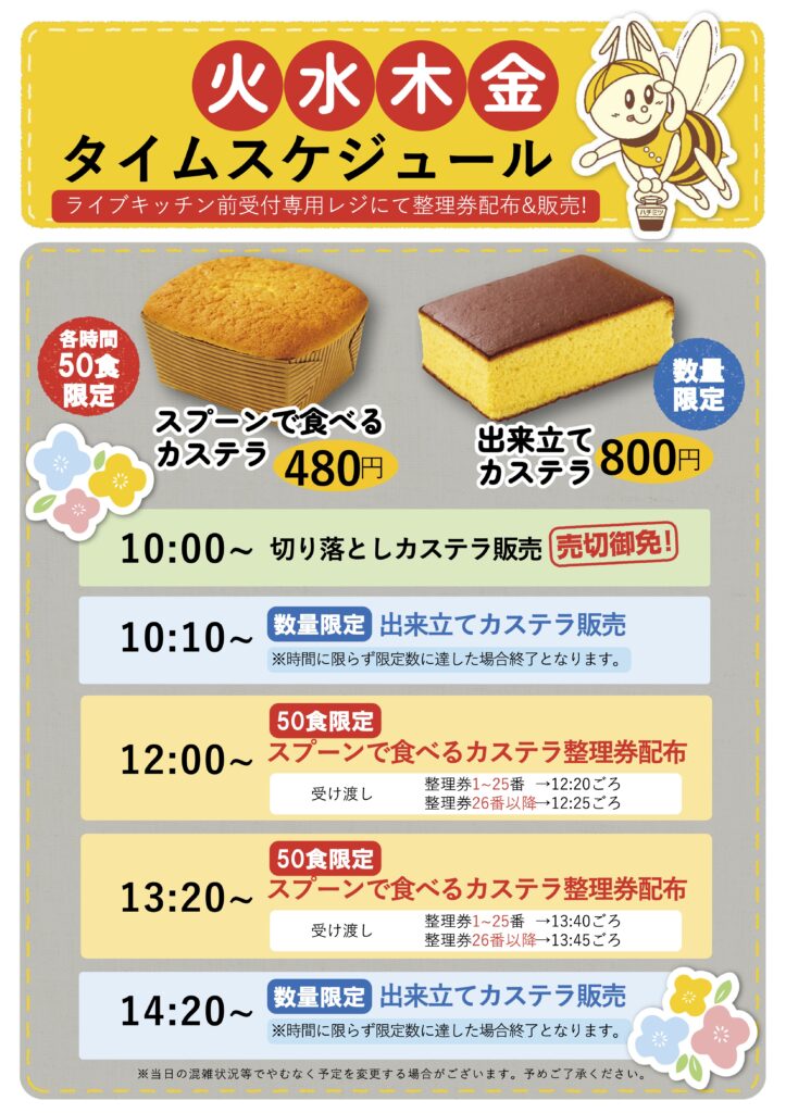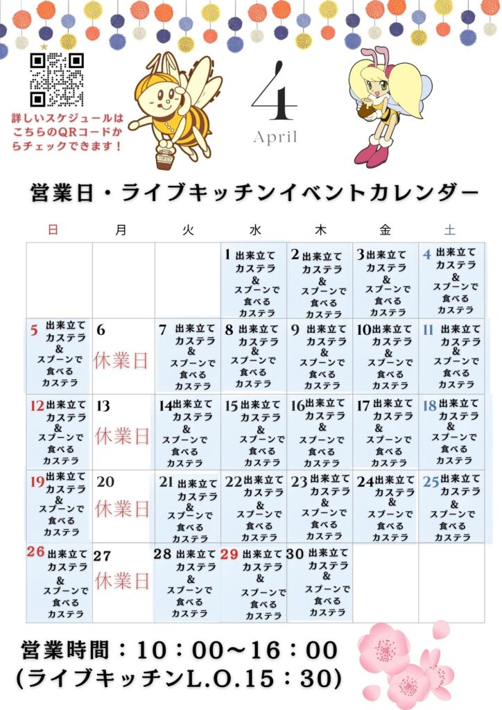 東京カステラパーク2026年4月カレンダー&ライブキッチンスケジュールのお知らせです!